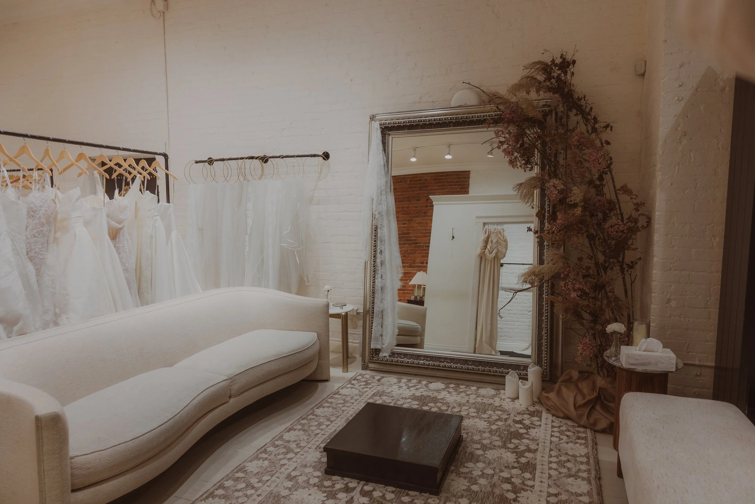 Our boutique has seating for up to 4 additional guests. We find bringing just a few of your closest loved ones keeps the experience special and focused on you. If you’re hoping to bring a larger party, we offer a “Mini Luxury” appointment option.