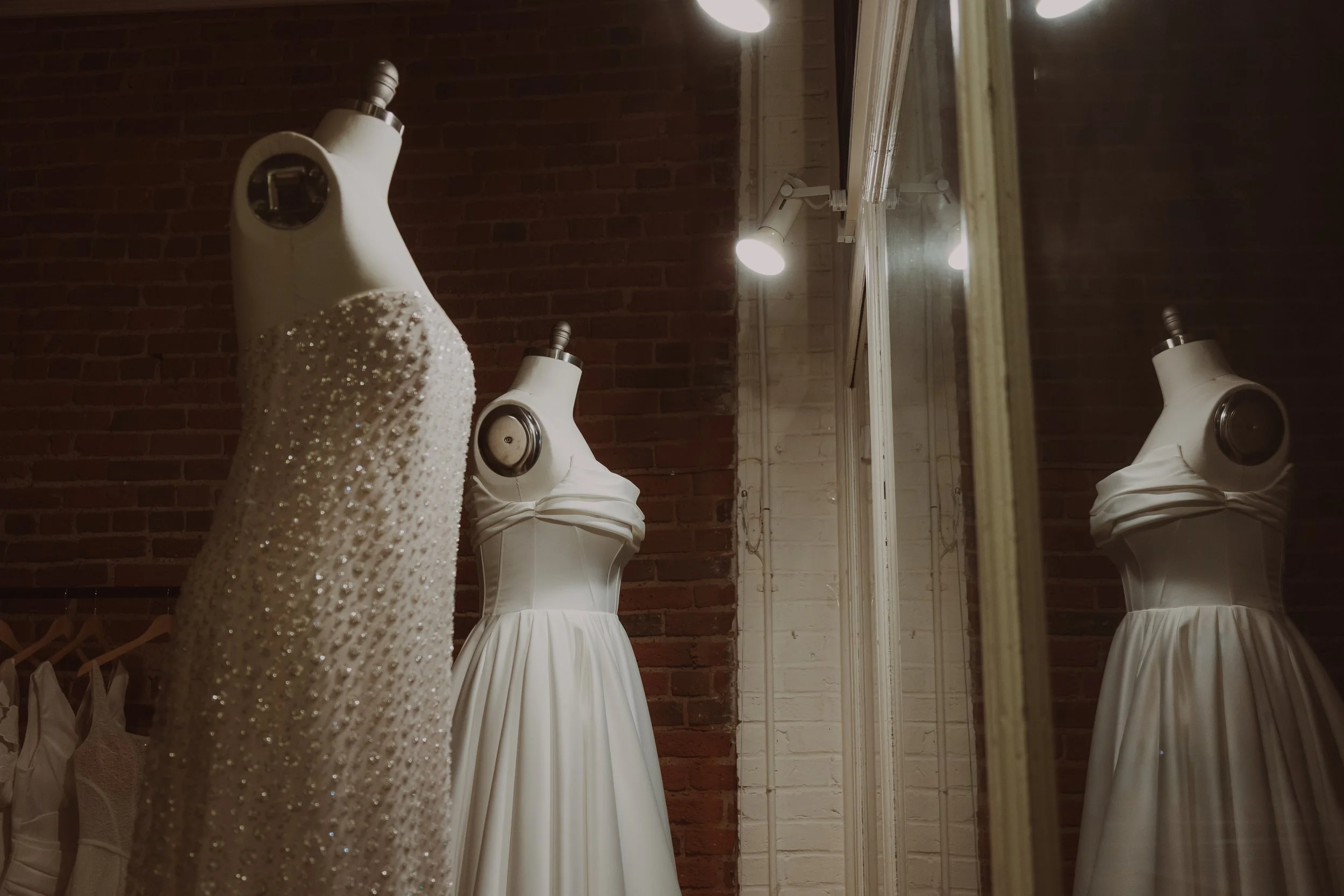 Our collection ranges from $2000 to $7500, with the majority of dresses being between $2500-$4000. We also have a selection of off-the-rack/sale dresses (you can check them out here) for the budget-conscious bride, that are all under $2000.